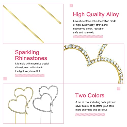 【♥♥Design doppio amore e strass】Il design unico doppio amore è adottato per la decorazione della torta d'amore, che è romantico e alla moda. È intarsiato con strass di cristallo squisiti, che scintilleranno sotto la luce ed è molto bello. Un set di due, in oro e argento, misura 20 x 9 cm.
