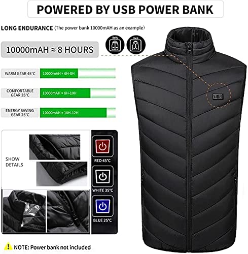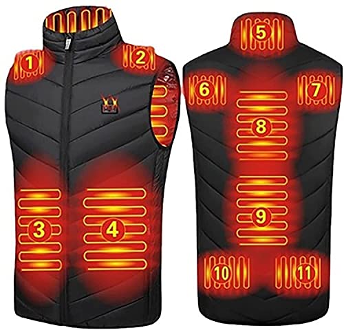 SKYWPOJU Gilet riscaldato per uomo donna, gilet da caccia USB ricaricabile elettrico riscaldamento abbigliamento leggero 11 zone di riscaldamento Gilet Riscaldato (Color: Black, Size: 4XL)