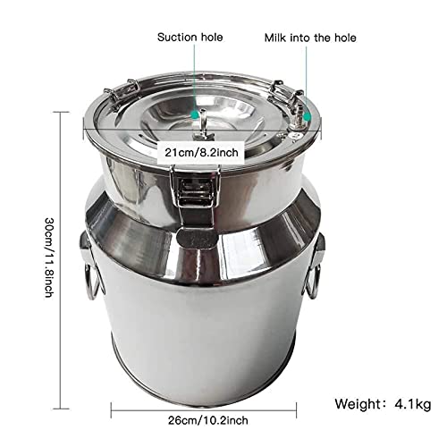 SKYWPOJU Mungitrice elettrica portatile per mucche/capre, Mungitrice a impulsi Mungitrice a pompa per vuoto con mungitrice in acciaio inossidabile 5/7/14L Dispositivo di mungitura per fattoria domesti