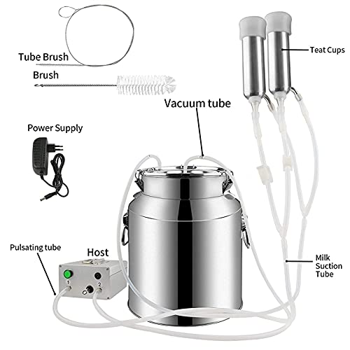 【Materiale di alta qualità】 Mungitrice con secchio di mungitura in acciaio inossidabile 5L/7L/14L. Realizzato in acciaio inossidabile 304, resistente, non tossico, sicuro ed ecologico. Il silicone alimentare è sicuro, sano e inodore, morbido e confortevole e più conveniente per succhiare il latte.