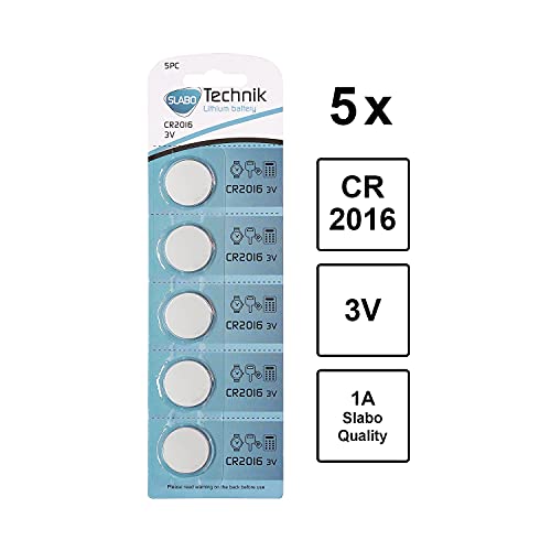 Slabo CR2016 Pile Bottone Litio Lithium - 3.0V - Celle a Bottone per Orologio da Polso | Torcia | calcolatrice Tascabile, ECC. - Confezione da 5