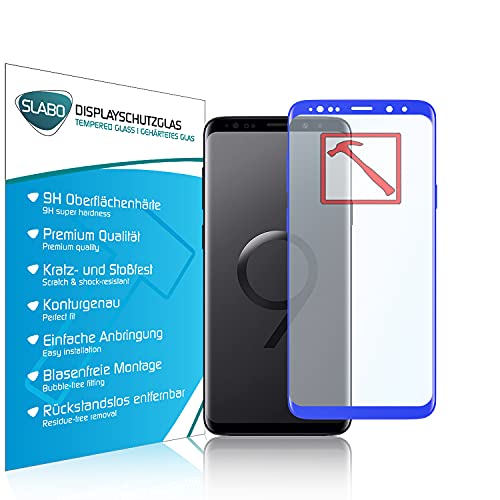 Slabo Premium Pellicola Protettiva in Vetro Temperato per Samsung Galaxy S9+ Full Cover Pellicola Protettiva Schermo Tempered Glass Crystal Clear - Graffi Fino a 9H - Cornice Blu