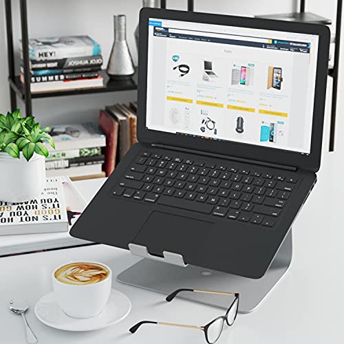 Il Supporto per Notebook è realizzato in alluminio di alta qualità - DESIGN ELEGANTE - Tamponi in gomma antiscivolo sul fondo assicurano la stabilità, cuscinetti in gomma sul bordo interno contro graffi e scivolare il notebook