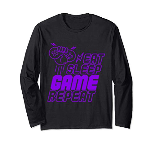 Eat Sleep Game Repeat Frase Divertente per i giocatori Maglia a Manica