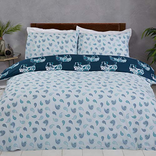 Sleepdown Set di Biancheria Copripiumino Reversibile e Federa per Letto Singolo (135 cm x 200 cm), Policotone, Blu alzavola e Bianco
