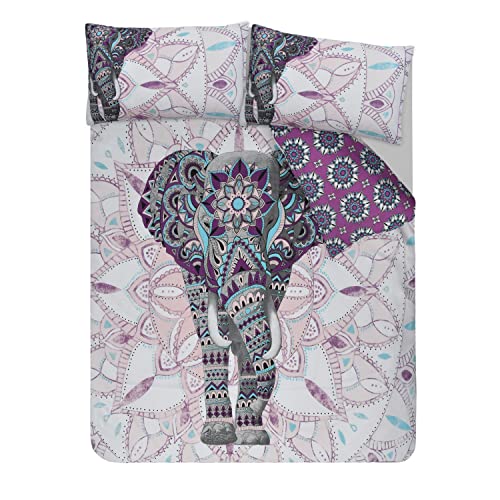 Sleepdown - Set di biancheria da letto con copripiumino e federe, motivo: elefante mandala, colore: viola, reversibile, facile da lavare, anallergico, morbido e liscio, super king size