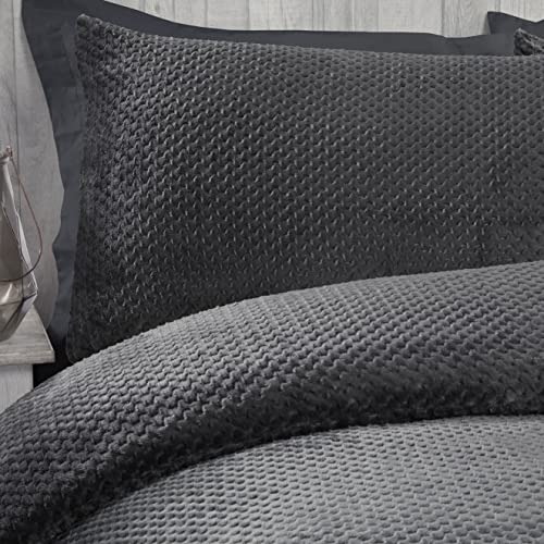 Sleepdown Set di biancheria da letto con federe, in pile grigio caldo e accogliente, reversibile, per letto super king (220 x 260 cm)