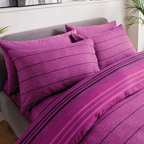 Sleepdown Set copripiumino e federa a righe testurizzate, per letto singolo, matrimoniale, king e super king (super king)