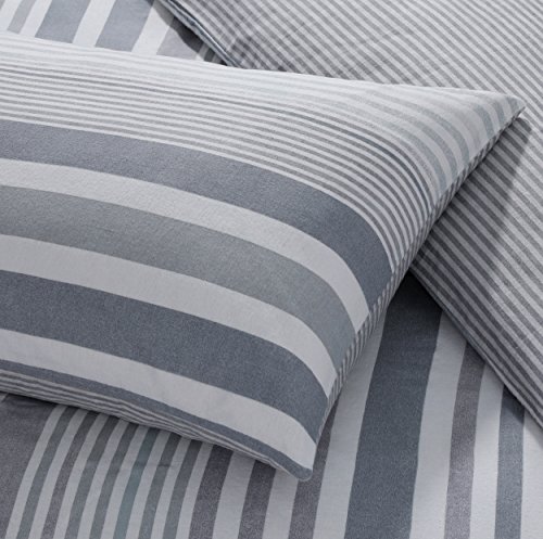 Sleepdown - Set copripiumino reversibile, in flanella, motivo a righe grigie, morbido, con federe, king size, 220 x 230 cm