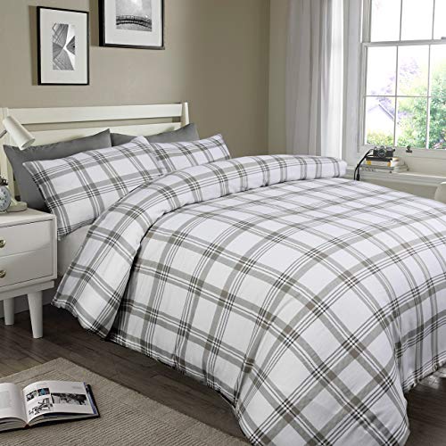 Sleepdown - Set copripiumino reversibile a righe e quadri grigi, morbido, trapuntato, con federe, super king size (220 x 260 cm)