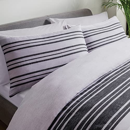 Sleepdown Striscia Testurizzata Bianco Set Copripiumino King Size, Cotone Poliestere, Nero/Grigio