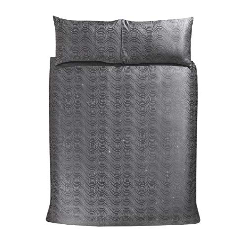 Sleepdown Swirl - Set di biancheria da letto con federa per letto singolo (135 cm x 200 cm) con motivo a righe glitterate grigio antracite
