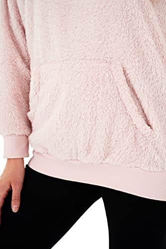 Sleepdown Womens Sherpa Teddy Fleece Longline Lounge Hoodie Felpa con Cappuccio, Blush Pink, M Tall Donna