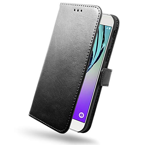 SLEO Compatibele Custodia per Samsung Galaxy A3 2017, [Premium Portafoglio Protetto] Wallet, 3-Scheda Slot, [PU Pelle] [Stile Vintage], Impermeabile Antipolvere Morbida Copertura - Nero
