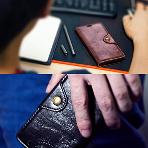 SLEO Custodia Nokia 1, Cover Nokia 1 Semplice Wallet, 3-Scheda Slot, [PU Pelle] Fibbia Magnetica di Rame, Nokia 1 Cover, Nokia 1 Custodia, Case per Nokia 1 - caffè