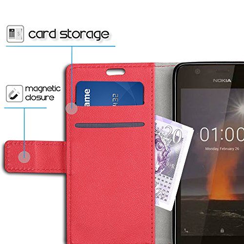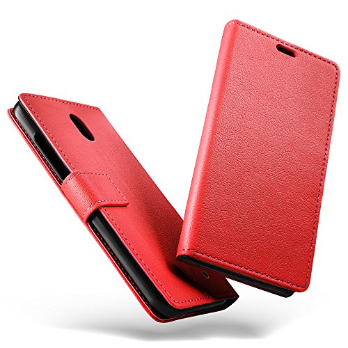 SLEO Custodia Nokia 1, [Premium Portafoglio Protettiva] Wallet Cover Nokia 1, 2-Scheda Slot, [PU Pelle] Morbido Impermeabile Antipolvere Protezione, Nokia 1 Cover, Nokia 1 Custodia - Rosso