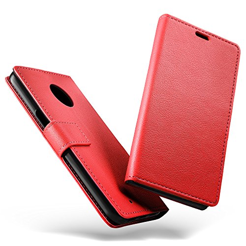 SLEO [Premium Portafoglio Protettiva Wallet Cover per Motorola Moto G6, 2-Scheda Slot, [PU Pelle] Morbido Impermeabile Antipolvere Protezione - Rosso