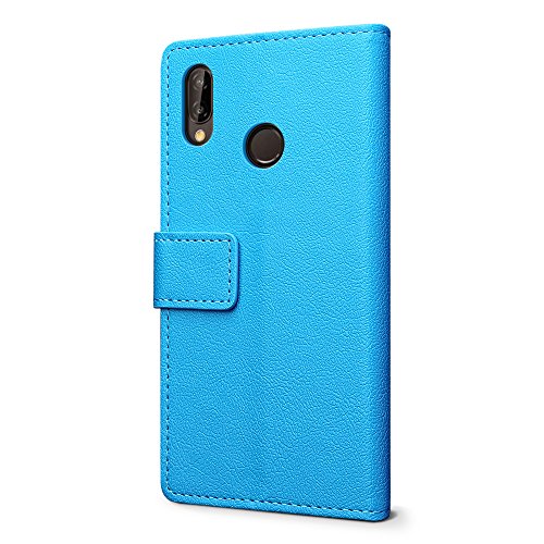 SLEO [Premium Portafoglio Protettiva Wallet Cover per Huawei P20 Lite, 2-Scheda Slot, [PU Pelle] Morbido Impermeabile Antipolvere Protezione - Celeste