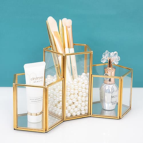 Porta pennelli da trucco: il ripiano in vetro dispone di un fondo in vetro e una finitura color rame dorato, perfetto organizer per trucco, portapenne. Aiuta a utilizzare il piano di lavoro, il bagno, la camera da letto, il comò e la toletta.