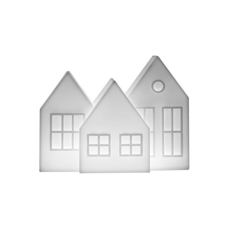 Kolme è una decorazione luminosa, in cui la sorgente Led che illumina le tre casette crea una calda atmosfera natalizia. Kolme è ideale per creare contesti invernali unici sia per vetrine di negozi, che per progetti contract o abitazioni private. Kolme è un prodotto bifronte:le facce presentano disegni differenti, in questo modo il prodotto può essere posizionato su un mobile al centro della stanza o sul davanzale di una finestra ed essere visibile da entrambi i lati. 43Lx19Px34H cm