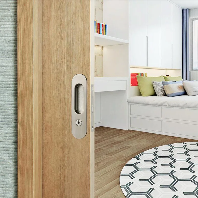 Sliding door lock with keys invisible move gate lockset handle embedded lock hook for cabinet pull furniture hardware