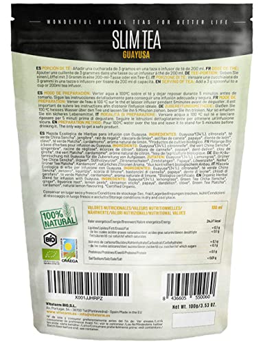 SLIM TEA Guayusa - Tisana Energizzante & Antiossidante - Infuso Bio con Tè Verde, Te Matcha, Zenzero, Liquirizia, Tarassaco, Cardamomo, Te in Foglie Sfuse 100g - Biologico Certificato - VITSTORM