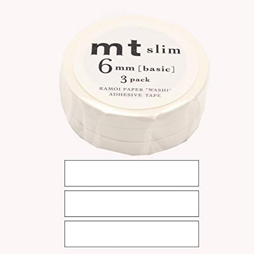 MT "Slim K - Nastro adesivo Washi, 6 mm, colore: bianco opaco, set di 3 rotoli