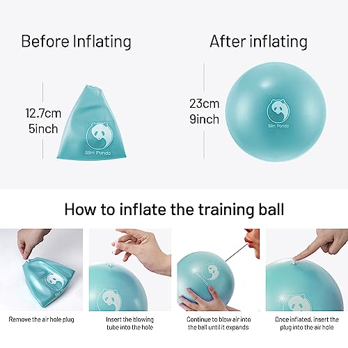 Slim Panda Palla Pilates Piccola, 23 cm Anti Scoppio Antiscivolo Palla Ginnastica con Cannuccia Gonfiabile, Soft PVC Palla da Yoga per la Terapia Degli Anziani, Casa, Fitness, Allenamento Equilibrio