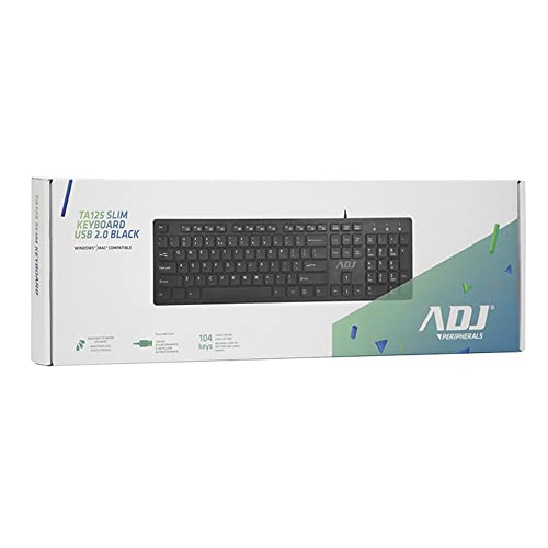 Adj Slim TA125 Tastiera Multimediale Cablata USB, Layout Italiano QWERTY per PC/Laptop/Notebook/Windows, 104 Tasti, Resistente ai Liquidi, Ergonomico, Nero