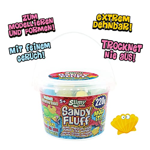 Slimy Sandy Fluff 220 g di sabbia blu - Sabbia Slime originale per bambini, massa magica da gioco con secchio e due forme, plastilina elastica (giocattolo dai 3 anni)