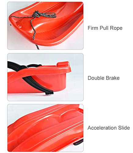 L'estremità anteriore è dotata di una fune di trazione, utile per tirare la slitta su ripide colline per un facile controllo della direzione, le particelle antiscivolo sul pedale fanno rimanere i piedi dei bambini sulla slitta