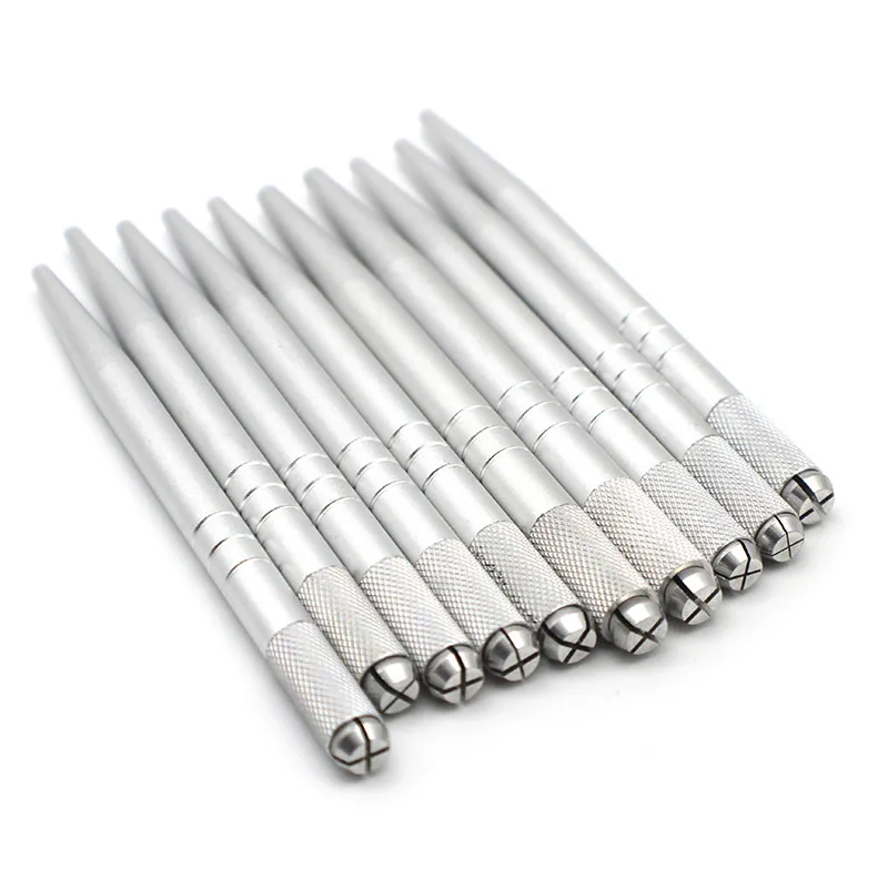100 Pcs Sliver Microblading Eyebrow Tattoo Pen Aluminum Alloy Permanent Makeup needle Pen For 3D eyebrow tattoo embroidery