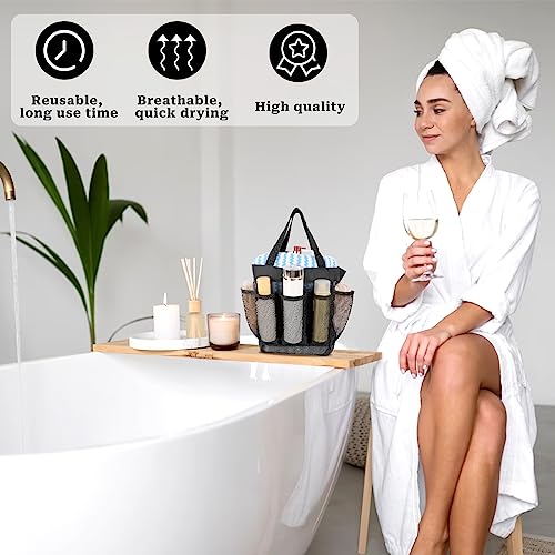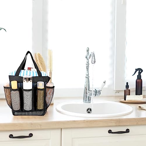 Sliverdew Borsa da doccia pieghevole per doccia, borsa da spiaggia portatile in rete, borsa da doccia con 8 scomparti in rete, borsa da toilette per campeggio, bagno, palestra (nero)