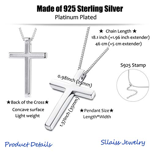 Sllaiss - Collana in argento Sterling 925, con ciondolo a forma di croce, 45 cm
