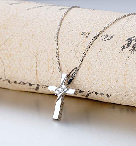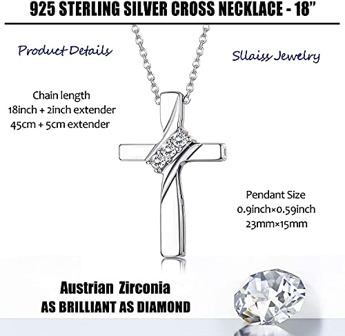 Sllaiss Collana con Croce in Argento Sterling 925 per Donne CZ Collana con Pendente in Croce con Zirconi 18 "
