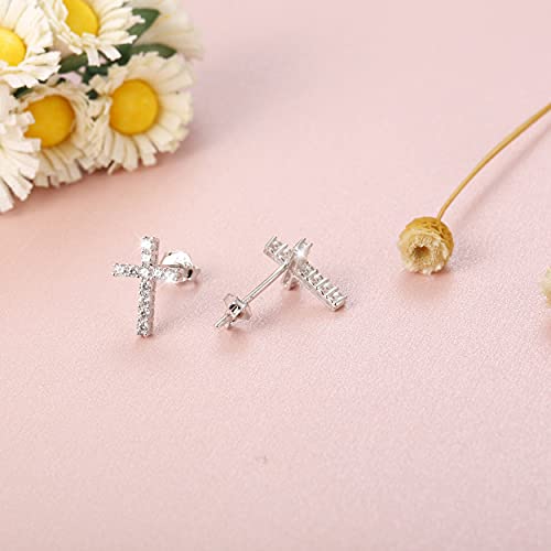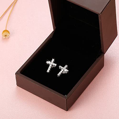 Sllaiss Fatto con Zirconia Croce Orecchini in 925 Argento Plata Esterlina Zirconia Cubica Pendientes per Donna