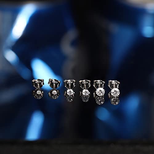 Sllaiss - Set di 3 paia di orecchini a perno in argento Sterling 925 con zirconi Swarovski, placcati in oro bianco e zirconia cubica, 2/3/4 mm