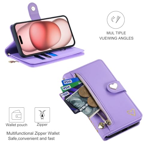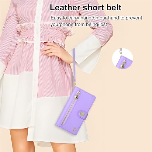 SLLMYYX Custodia a portafoglio compatibile con Samsung Galaxy A42 5G, resistente pelle PU, con laccetto da polso con cerniera, tasca per 9 carte di credito, custodia per telefono da donna (viola)
