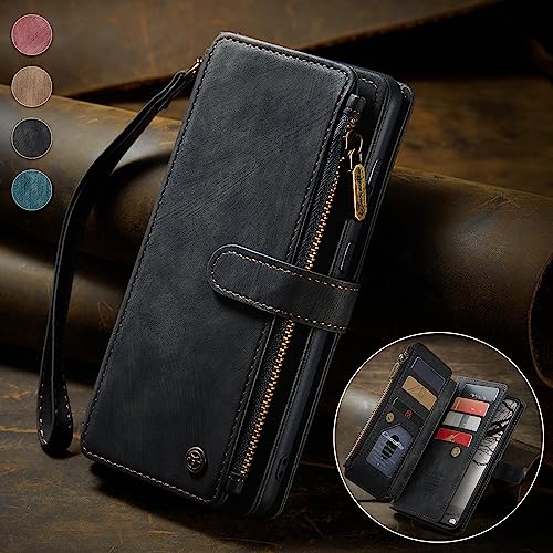 SLLMYYX Custodia a portafoglio compatibile con Samsung Galaxy A13 4G, in pelle PU di lusso con 10 scomparti per carte di credito, tasca con cerniera, cavalletto con cinturino da polso (nero)
