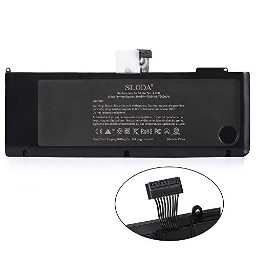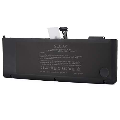 SLODA A1382 A1286 Laptop Sostituisci batteria per 15 inch Macbook Pro 8,2 9,1 (inizio fine 2011 metà 2012 versione) Unibody compatibile [Li-Polymer 10,95V 7200mAh/78.84Wh]