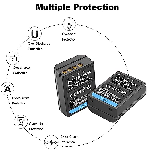 【Specifiche della batteria】 2000mAh x 2 | 7,2V | 14,4Wh Batteria agli ioni di litio di alta qualità senza effetto memoria. Capacità superiore per aiutarvi a registrare momenti più emozionanti, un sostituto professionale per la batteria Olympus BLX-1.