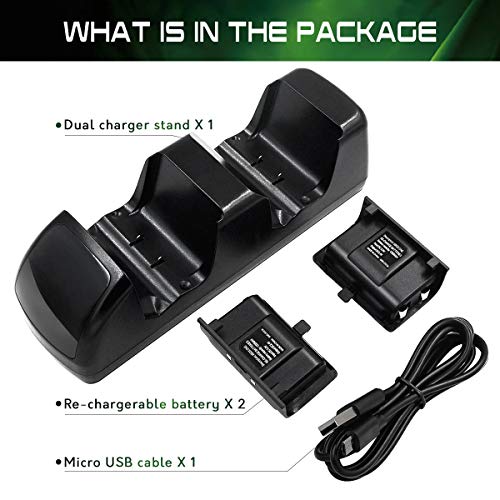 Slopehill Xbox One, stazione di ricarica per controller Xbox One, caricatore Dual Docking, con 2 batterie da 2-3 ore, 10 ore di riproduzione per Xbox One/One S/One Elite Wireless Controller