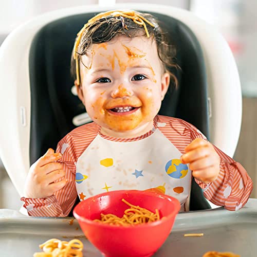❤FACILE DA PULIRE e Asciutto.❤ Bavaglino bambino con maniche è fabbricato con materiale poliestere impermeabile, facile da pulire e comodo da indossare.