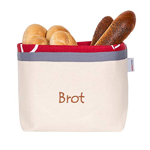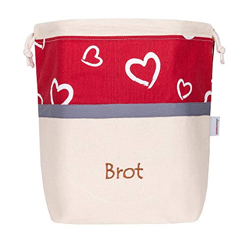 Slowroom Borsa per Il Pane, Cotone, Colore: Rosso con Cuori, 32 x 35 cm