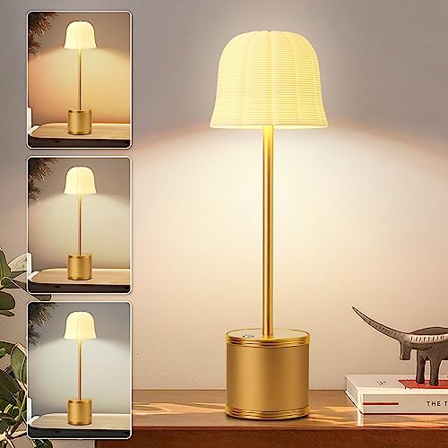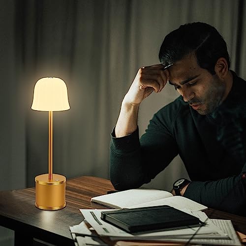 SLSMD Lampada da tavolo LED senza fili Ricaricabile Dimmerabile 5000mAh 3 Modalità di Luce Uso Interno/Esterno batteria Lunga Durata Lampada da tavolo Trasportabile (Oro)