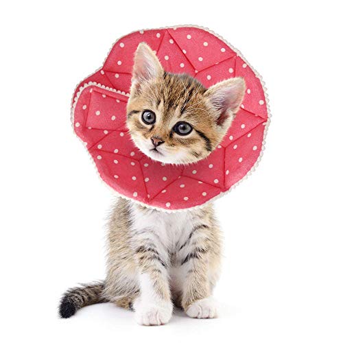 SLSON Collare di recupero del gatto morbido collare a cono di gatto protettivo in cotone regolabile chiusura collare per gatto e cucciolo, rosa (S)