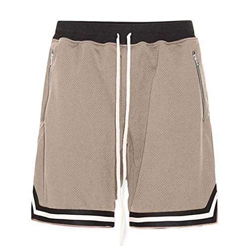 SLTO Pantaloncini da Basket da Uomo Taglie Forti con Tasche con Zip Pantaloncini Sportivi Pantaloni Pantaloni da Allenamento per Palestra di Allenamento Atletico-Light Khaki-L