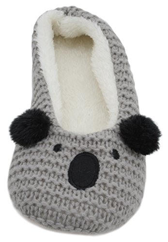 SlumberzzZ - Pantofole a ballerina da donna con animali, realizzate a maglia, Grigio