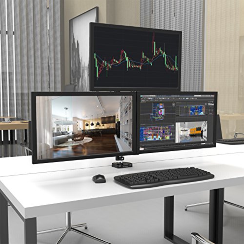 SLYPNOS Triplo Braccio per Monitor Amovibile, Supporto per 3 Monitor da Scrivania con Molla, adatto a 2 Schermi da 15 a 27 pollici, in Alluminio con Morsetto a C, per Gioco/lavoro, Nero