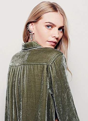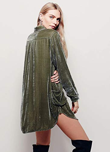 SLYZ Donne Europee E Americane Autunno Inverno Nuovo Stile Abito Gonna Camicia di Velluto Oro A Maniche Lunghe con Scollo A V Allentato
